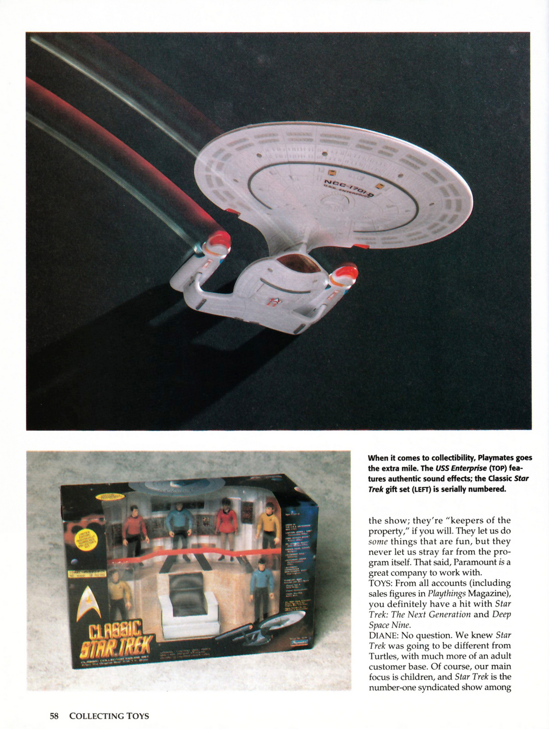 The Hong Kong based manufacturer was the first toy company in history to net more than $100 million due to the success of the Teenage Mutant Ninja Turtles line in the late 80’s and had more recently invested the Star Trek franchise. Former Playmates Senior VP of Marketing Karl Aaronian understood that they “Had to appeal to those hardcore fans, otherwise you don’t have anything,” elaborating, “With Star Trek, you have a fanatical following who notices every little detail.” So Playmates planned for detailed accurate products with play features in service of that goal, greatly aided by the fact that the company’s chief action figure sculptor, Steve Varner, was a “trekkie” himself. It paid off, at a time when, as per Aaronian, “timing was everything” as “the audience had really reached its maximum size and was hungry for product”, the Playmates releases became the “biggest and most successful Star Trek line ever.”
